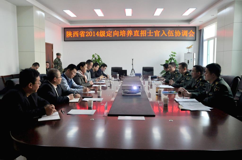 12月8日下午,公司2014级定向培养直招士官入伍协调会在阎良校区召开,公司党委副书记谭少敏,省军区军务动员处处长吕森,西安警备区参谋长王巨礁,阎良区武装部政委周立文,公司人才招聘处、教务处、js33333金沙线路检测负责人参加了本次会议,会议由吕森主持。工作组一行首先实地考察了js33333金沙线路检测的建设情况,详细了解了公司的军营文化宣传、士官生公寓管理等情况,随后参观了公司校史馆、航空馆。