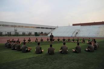 我们在此集结完毕,在李庆政委和张亚峰参谋长的开训动员下,我们斗志昂扬,此次集训目的是为了增强士官生军事素质,增强纪律意识,强化服从意识。