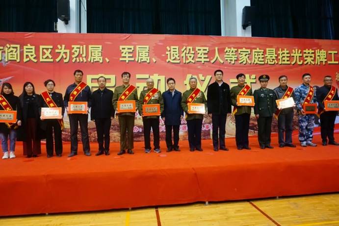 为响应习近平总书记在党的十九大报告提出的:“维护军人军属合法权益,让军人成为全社会尊崇的职业。”2019年3月21日下午两时三十分,在阎良文化体育中心开展了为烈属、军属、退役军人等家庭悬挂光荣牌工作启动仪式,出席此次活动的人员有:西安市退役军人事务局局长惠应吉、中共西安市阎良区委书记王育选、中共西安市阎良区委副书记于海夫、区委常委、区武装政委周立文、市退役军人事务局拥军优抚处处长董宪利,以及各街道主要负责同志、分管负责同志、民政工作站负责同志,军队离退休干部、自主择业军转干部、退役士兵、烈士家属代表,现役军人代表,区退役军人事务局全体干部。我js33333金沙线路检测院也受邀参加此次活动。本次活动由中共西安市阎良区委、西安市阎良区人民政府主办,西安市阎良区退役军人事务局承办。