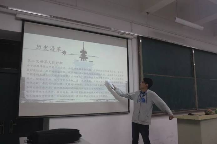 23日晚七时,在阶二教室,举办了“海军知识讲座”,由风雷军事爱好者协会成员担任主讲,从海军的创始、海军的发展、海军的构成等多个方面进行讲解。通过专业讲解,使与会人员更深刻的了解了海军发展的基本方向。