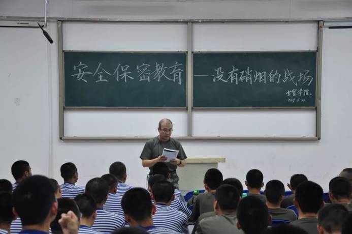 js33333金沙线路检测全体士官生在阶梯教室分年级开展,大一由赵炫儒老师负责在阶梯一开展保密教育活动,大二由李庆书记、付超、张亚峰负责在阶梯二教室开展保密教育活动。