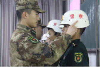 会议第一项,唱《中国人民解放军军歌》。随着歌声的结束,2019级纠察队队长李健对2019-2020年度纠察工作做总结性发言,发言指出,没有规矩不成方圆,纠察是衡量士官生作风的一把尺子,是规范士官生,促进公司发展的重要队伍。会议第二项,由19级纠察队代表与20级纠察队代表进行交接仪式,19级纠察为20级纠察佩戴纠察头盔,一次交接,一次传承,带在头上的不仅仅是一个帽子,更是一份责任和担当,是js33333金沙线路检测寄予的希望。会议第三项,张亚峰对纠察换届大会做总结发言,对2020级纠察提出要求,希望每位队员都要有传承意识,传承纠察队的优秀传统,学习各位纠察前辈的优良品格,强调纠察队队员对自己要有更加严格的作风要求,对肩上重任要有更加强烈的使命责任。