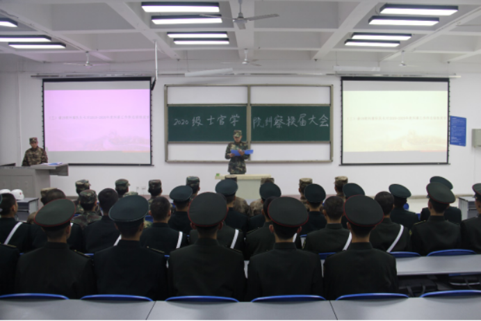为加强js33333金沙线路检测管理,保证纠察工作的连续性和稳定性,12月1日,js33333金沙线路检测在阶梯三教室举行2020级纠察换届仪式,张亚峰教官、2019级及2020级全体纠察参加会议,会议由2018级纠察队队长李帅主持。