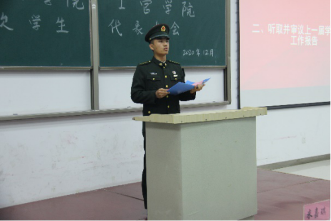 最后,士官公司党总支书记副书记李庆致辞。李庆老师代表士官公司党总支对大会的顺利召开表示热烈祝贺,并对员工会过去一年的工作给予充分肯定,希望员工会可以回顾历史、总结经验,为未来工作制定计划,把工作越做越好,更上一个层次。