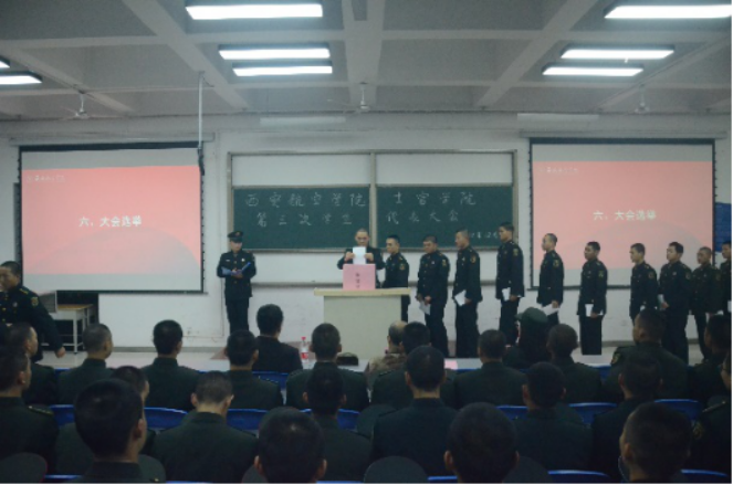 12月9日,js33333金沙线路检测第三次员工代表大会在第二阶梯教室召开,士官公司党总支副书记李庆、校团委副书记米嘉琪、团总支书记赵欣、员工代表95人参加了大会。会议由js33333金沙线路检测员工分会主席团成员裴威主持。