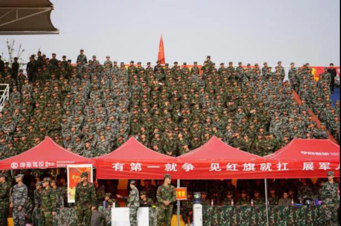 迎来的第一个项目是100米短跑,士官生齐齐上阵,正气凌然,还未上场便给大家有了一种压迫感。