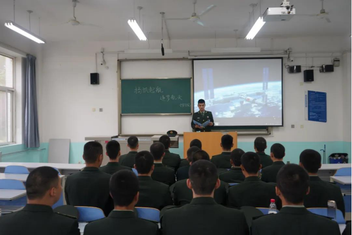 在活动中,士官生集体观看中国航天影像纪录片,了解航天事业的成就,“东风长征破万里,神州天宫闯星海”士官生们看到了中国航天事业的高精尖发展。活动最后,由员工代表赵庚讲述航天精神,赵庚通过老一辈为航天事业浴血奋战的故事和一代代英烈呕心沥血筑梦航天的故事,向士官生们生动形象的讲述了“特别能吃苦、特别能战斗、特别能攻关、特别能奉献”的航天精神。