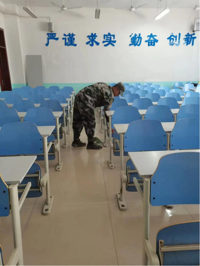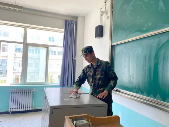 在整个志愿活动过程中,分工明确、互相配合,认真清扫教室的每一个角落一些比较隐蔽,平时容易被忽略的角落,也被士官生们细心清理。他们本着吃苦耐劳精神,让教室及周围的面貌焕然一新,为同学们提供了一个干净且舒适的学习环境。