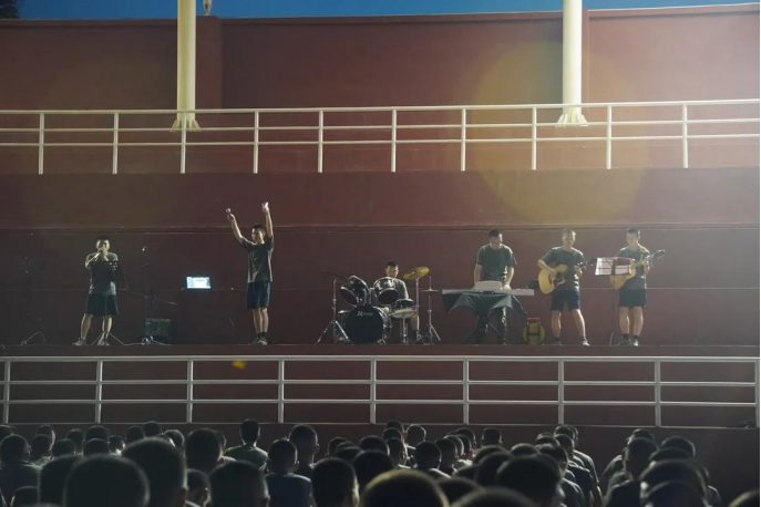 “慌慌张张匆匆忙忙 为何生活总是这样……”js33333金沙线路检测乐队的同学们演奏的《活着》,成功带动了全场氛围,在同学的欢呼声尖叫声中结训晚会拉开帷幕!
