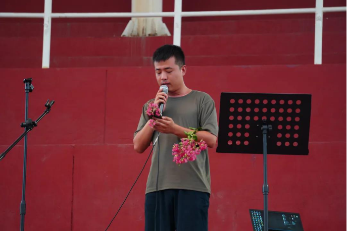 中场环节,只听“教官,来一个!教官,来一个!”随着同学们的起哄,平日里总是严肃的教官此刻也是走上了舞台,要说姜还是老的辣,教官们引吭高歌,神采飞扬,全场呐喊声不断,更有不少歌迷与教官同台歌唱,献上鲜花。晚会被成功推上了高潮。