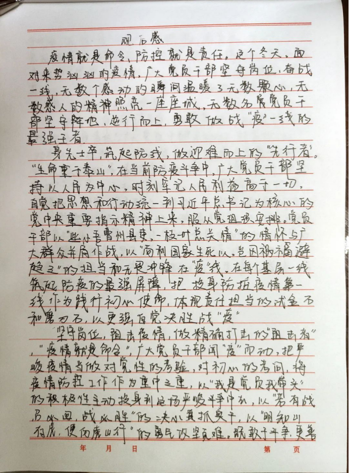 通过观看影片,士官生感同身受,没有从天而降的英雄,只有挺身而出的凡人。疫情工作者化身“大白”前往一线,不怕苦不怕累,奉献自己,可谓称之为“最美逆行者”。“不给国家添麻烦,不给人民添麻烦”已经深深地印在每位学员心中,学员们深知自己做为深入其中的参与者,能帮到最大的忙就是遵守防疫工作者为其制定的相关规定,这便是对那些默默无闻、无私奉献的“大白”最好的回报,这是一部感人肺腑的电影!