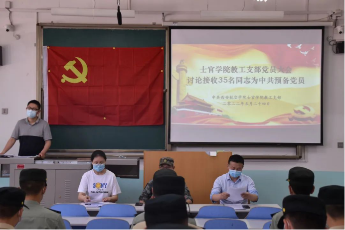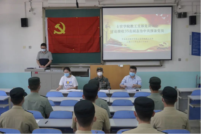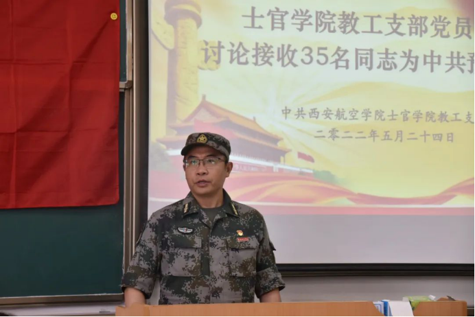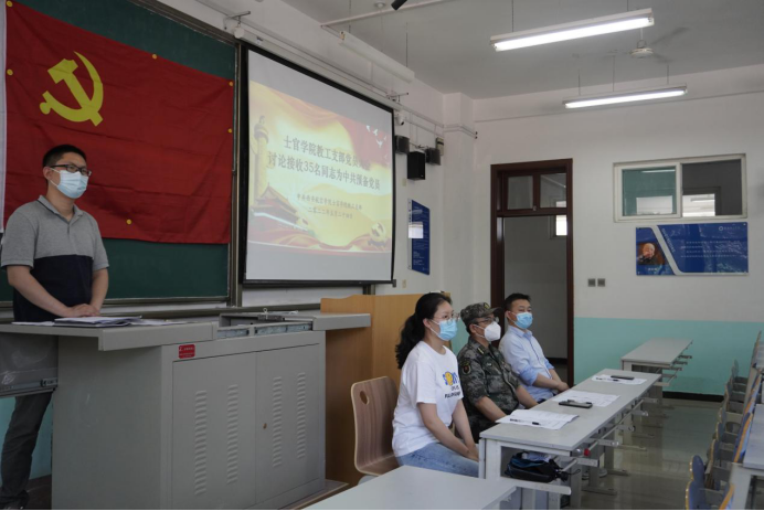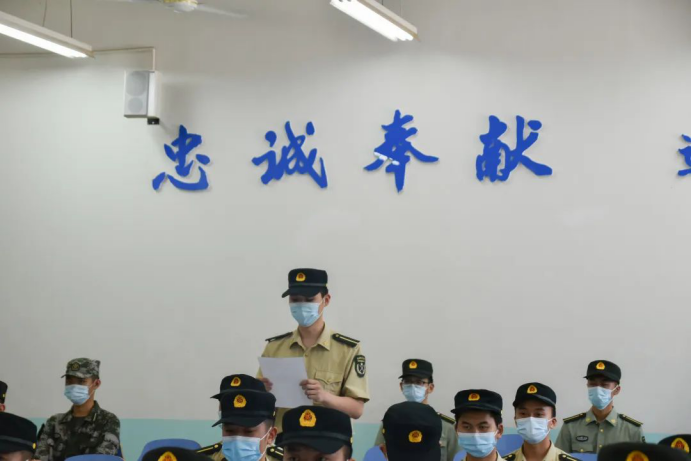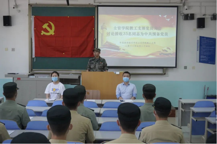 最后,由士官公司党支部副书记李庆老师对35名同志总结讲话。希望大家在今后的学习生活、乃至日后入伍中能够不忘入党初心,坚定理想信念,加强党性修养,提高自身学习能力;发挥模范带头作用,不断输出正能量,肩负起新时代新使命!
