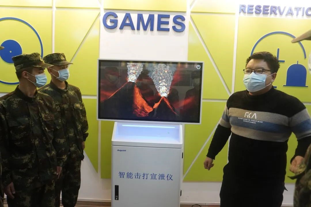 陈文博老师向大家详细讲述心理咨询中心的主要职责与功能。讲解中,心理护航员有序体验了四个区室的设施,分别是沙盘游戏、按摩椅、运动发泄、VR项目体验。随后,学员们通过相关设备的体验,来缓解近期训练带来的疲劳,并得到心理压力的释放。