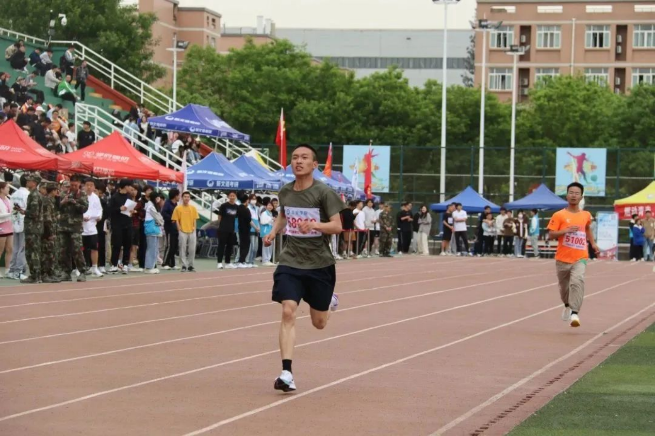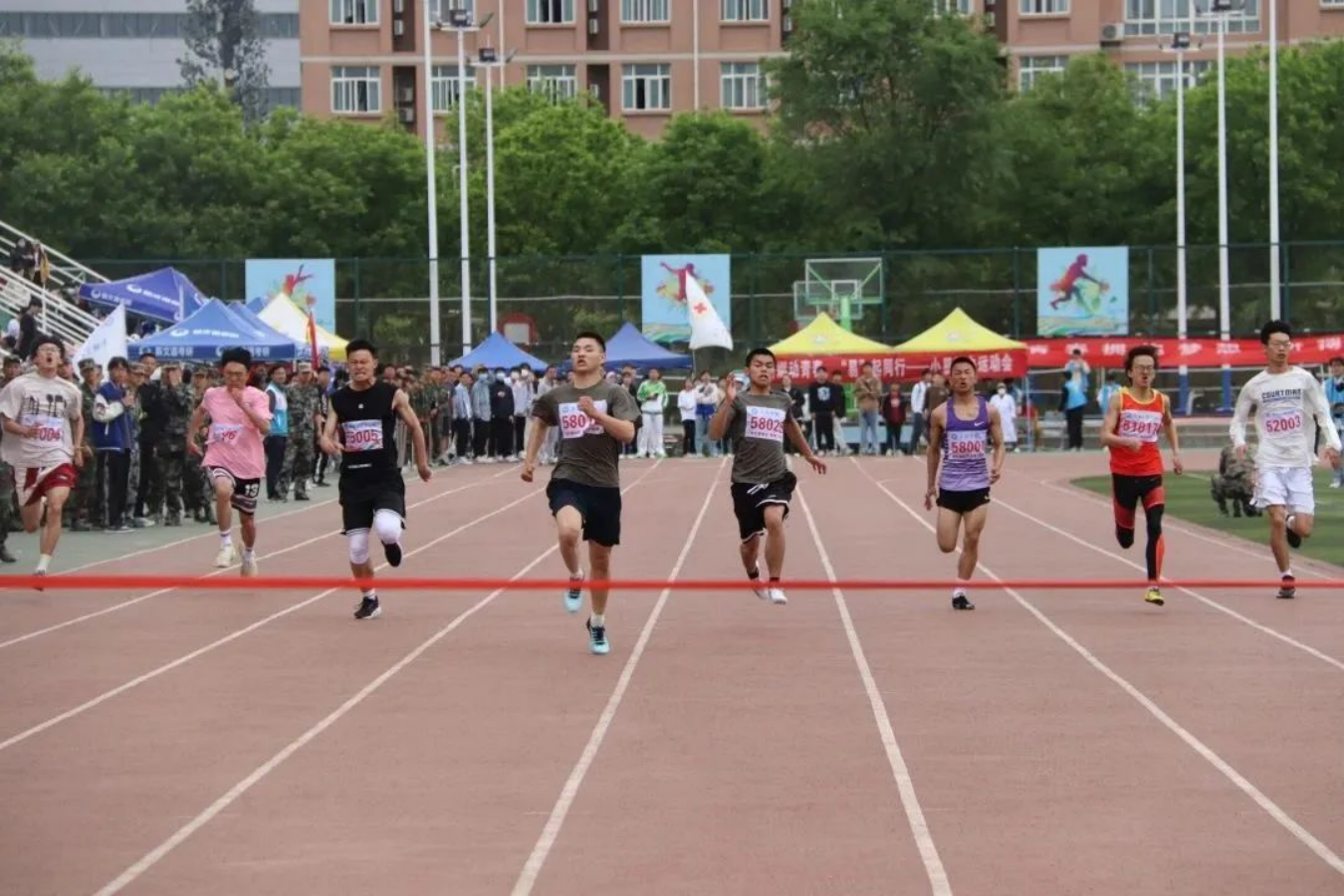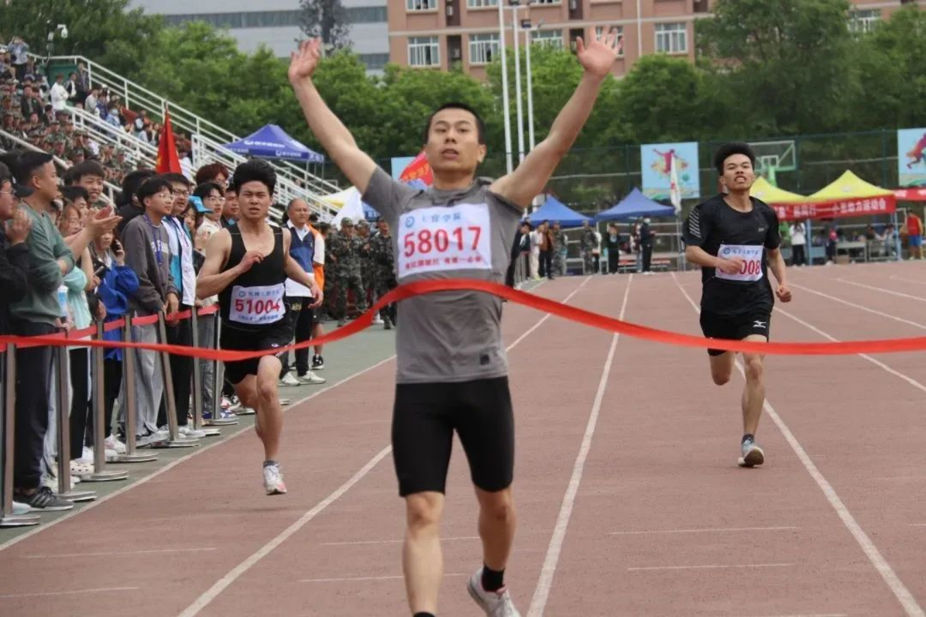 200米竞赛项目中,军士健儿化作绿色的闪电,专注于终点的红线,以猎豹般的速度冲向终点。披星戴月走过的路,最终都将化作繁花满地,朔风颂唱启长歌,少年奋勇正当时!