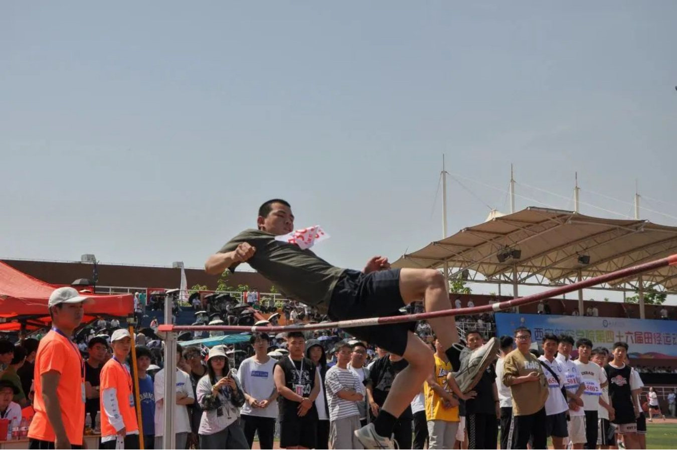 冲刺、起跳、完美落地,流畅而又优美的动作。跳高运动员们犹如矫健的飞燕,轻盈地越过横杆。