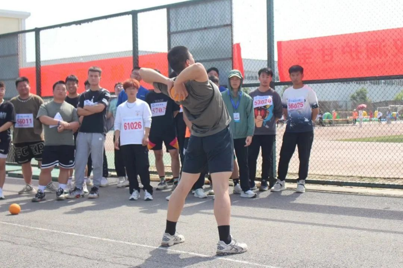 在这片小小的铅球场上