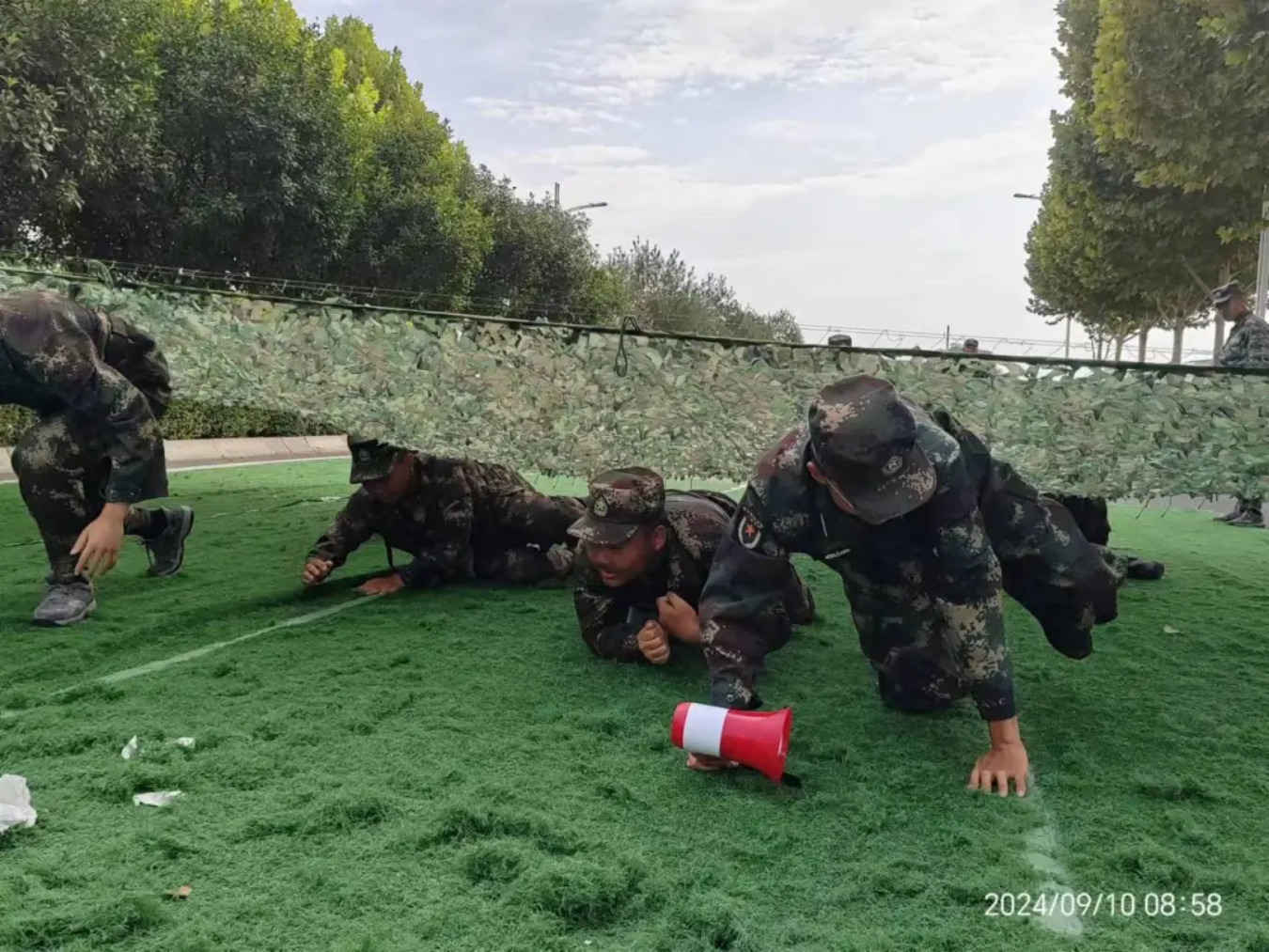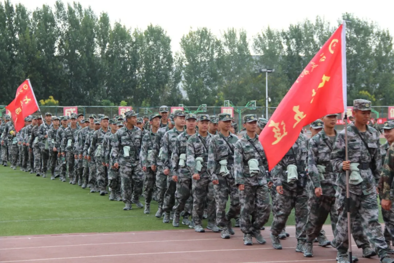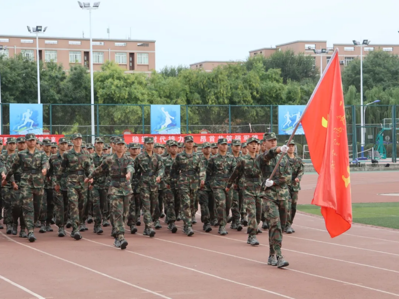 迷彩青春操场绽,烈日壮志凌云天。