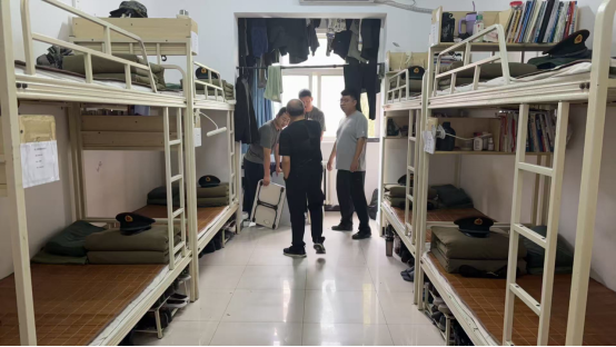 在宿舍内务检查过程中,工作人员重点查看了宿舍地面清洁、被装物品摆放等方面,同时对小桌板和宿舍用电安全也进行了排查,杜绝违规电器使用等安全隐患。大部分宿舍展现出良好的卫生风貌,地面干净、物品摆放有序,体现了较高的自律性和良好的生活习惯。同时,对个别宿舍存在卫生死角清理不及时、个人物品杂乱堆放、使用小桌板等问题,检查人员当场提出整改要求,督促学员尽快整改。