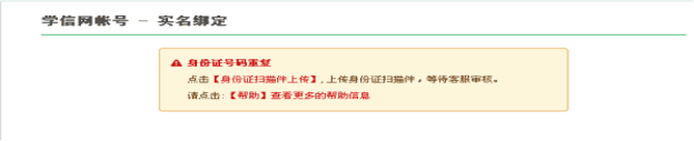 b.注册时提示姓名、身份证重复:通过系统功能或者操作提示找回已有帐号。若重复注册,系统会在信息审核通过后注销旧有帐号。