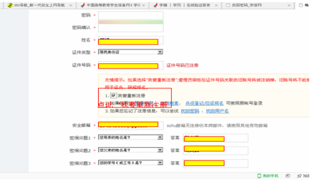 一、登录学信网,进入注册页面,进行注册,按照下图提示勾选“我要重新注册”。
