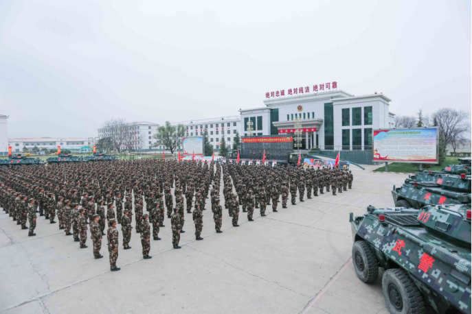 车列阵,战鼓催征。近日,武警第一机动总队某新兵大队在甘肃平凉隆重召开2021年度新兵教育训练开训动员大会,练兵场上冲破天际的喊杀声点燃了每名新战士投身练兵备战的火热激情,新兵入伍训练也因此正式拉开战幕。