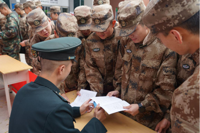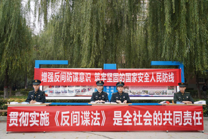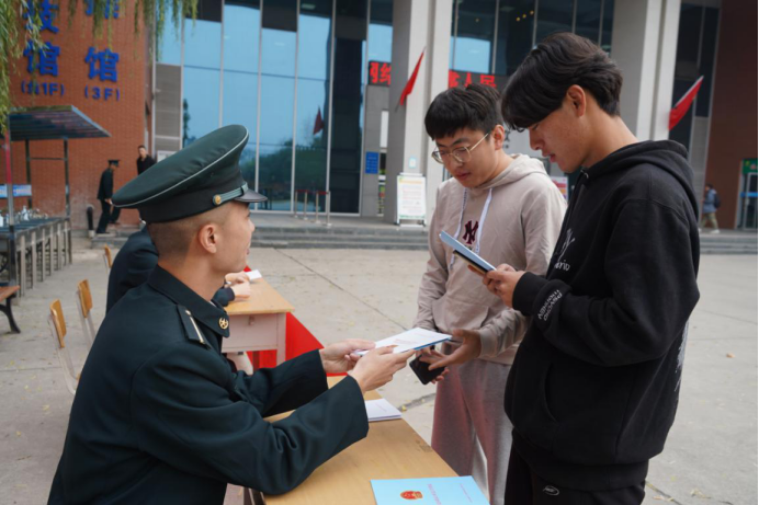 随后,士官生骨干在员工第一餐厅门口进行宣传活动,通过悬挂条幅、摆放展板、发放宣传手册等形式,向过往师生宣传《反间谍法》颁布实施的重要意义,了解宪法规定的关于公民维护国家的安全、荣誉和利益的基本义务,引导师生树立国家安全意识,保守国家秘密,共同为国家的长治久安做出应有贡献。