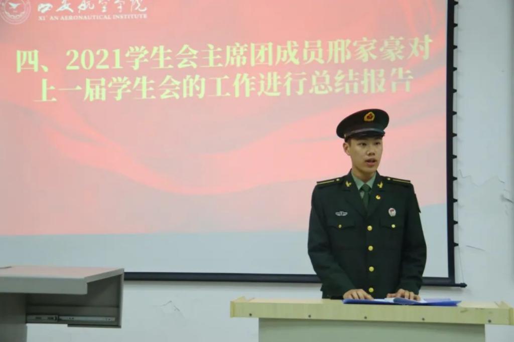会议第四项,由2021级员工会主席团成员邢家豪对上一届员工会的工作进行总结报告。报告总结了2021级员工会取得的成就,并对2022级员工会寄以厚望,希望他们接过使命,再创辉煌。