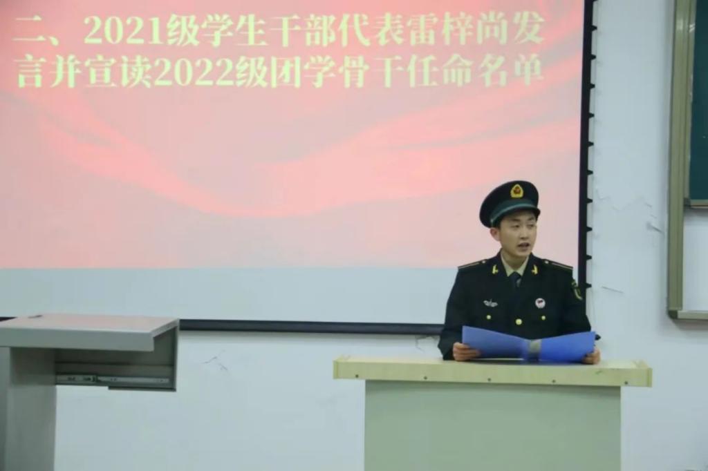 会议第二项,由2021级员工干部代表雷梓尚宣读2022级团学骨干任命名单。