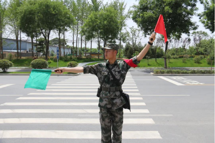 拉练路上,安全员和纠察队员为大部队开辟道路、安全护航,整个队伍有组织有纪律的沿路行军,赢得群众驻足观看。