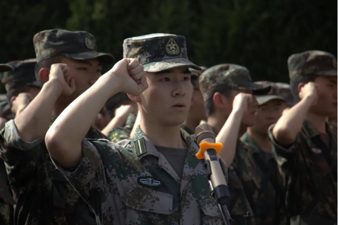 “我是中国人民解放军士官生,我宣誓!”在员工代表敬一鸣的带领下重温了军人誓词。