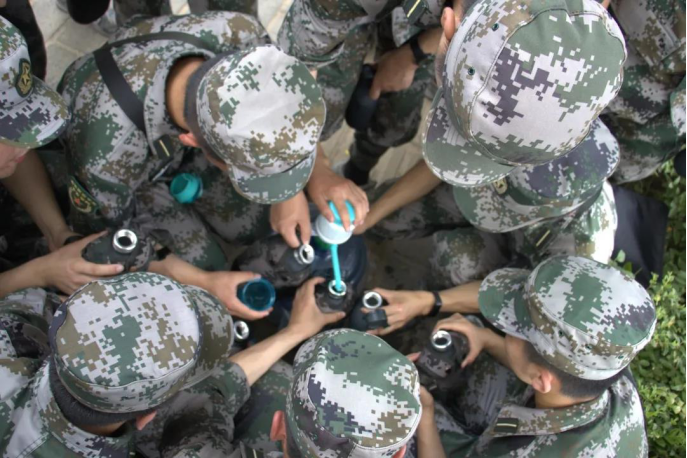 行军路上,有辛酸有欢乐,脚上的水泡,难耐的酷热,汗水打湿了军装,同学们仍然互相鼓励,砥砺前行。几分钟的休息,有打闹有欢笑,几个人共喝一瓶水,几个人互相鼓励,几个人诉说烦恼……