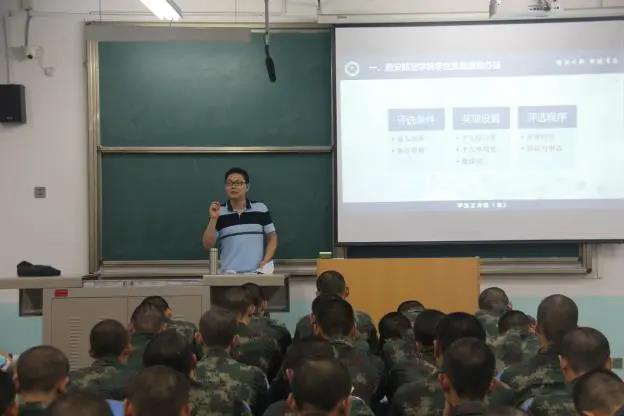 js33333金沙线路检测军政教官敬超凡向新生传达部队条令条例规定、军人规范。为使新生端正态度,正确认识士官生这个准军人身份,敬超凡通过提问的方式,将士官生形象更深刻的烙印在了新生心中,会中新生坐姿端正统一,由此看出他们已经做好了“认真学习,报效国家”的准备。