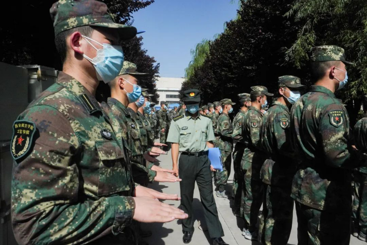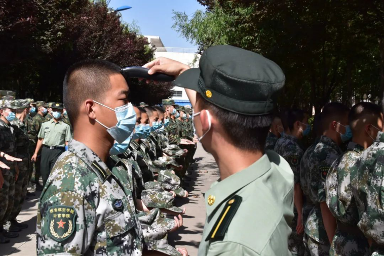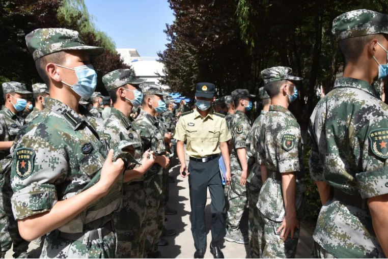 全体士官学员姿态端正、昂首挺胸、精神饱满、气宇轩昂,以端正的态度迎接检查。