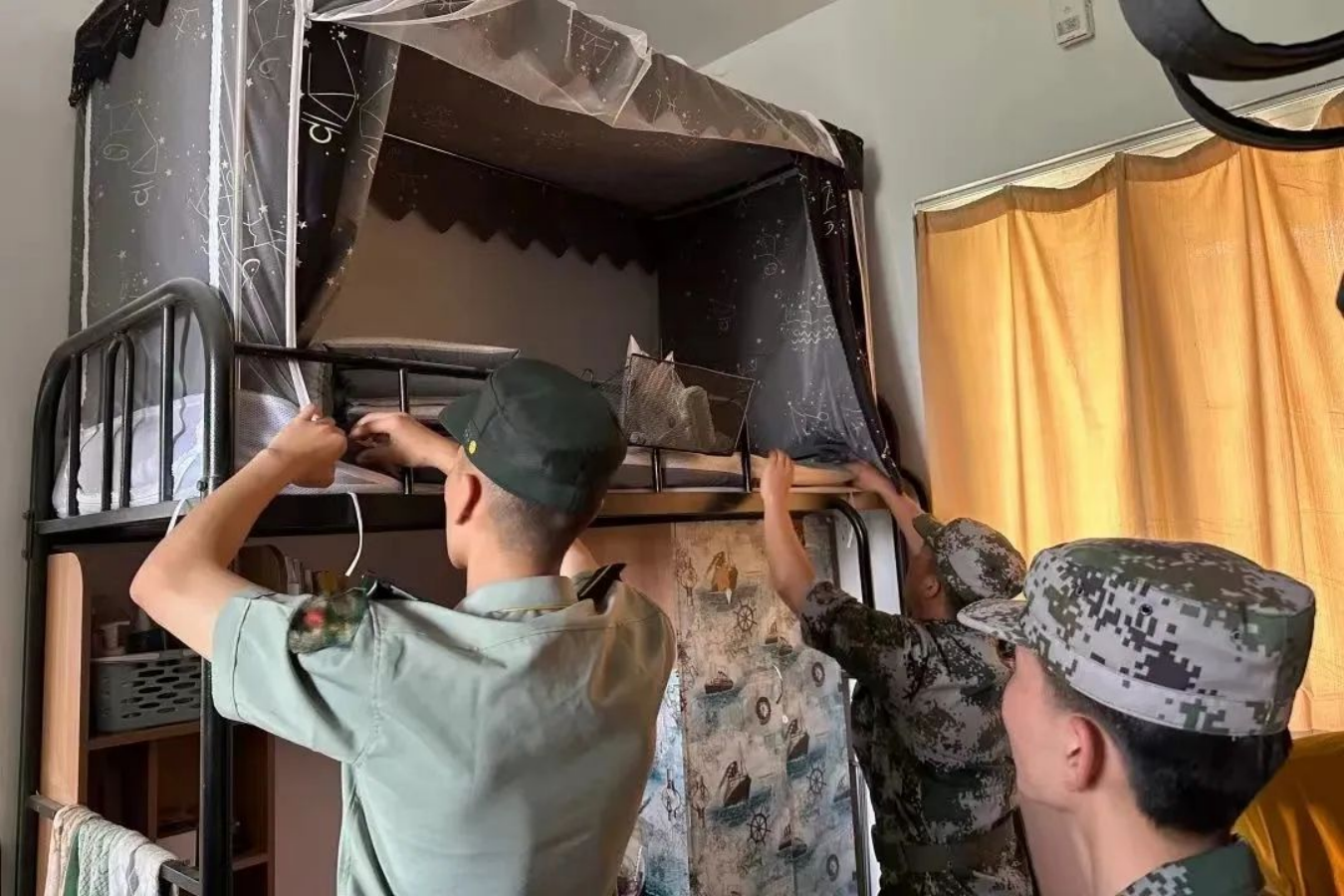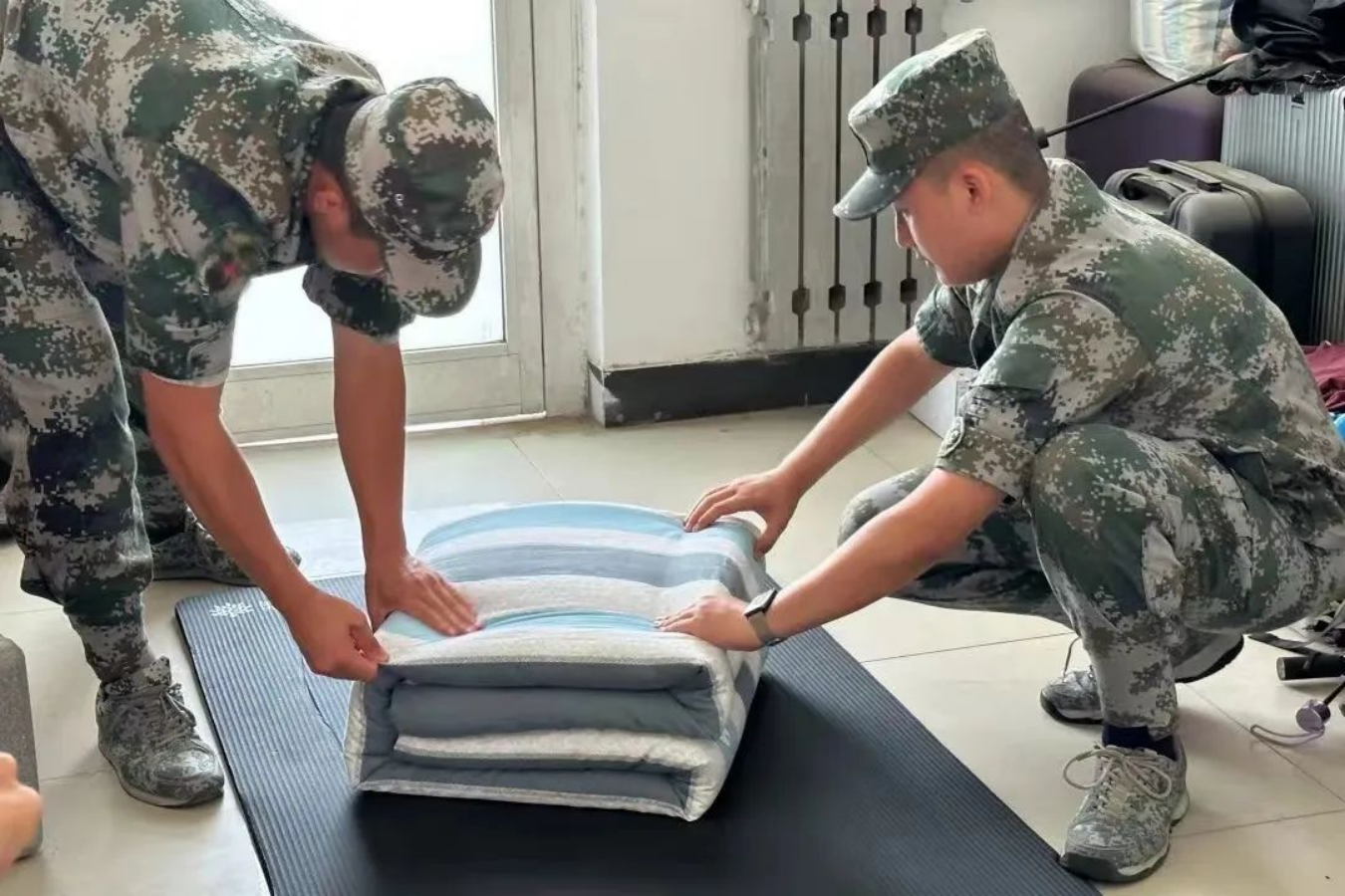折、压、翻、修,一个标准的“豆腐块”并不能信手拈来,是一步步的压实平铺,一次次的修平修角,一遍遍的折痕弄印,这是对内务的要求,也是对耐心的磨练。