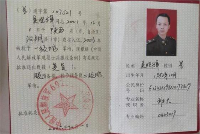 吴晓辉,1982年生,陕西汉阴人,2001年入编中国人民解放军陆军。2003年转任下士,转任为下士之后担任起班长职务,更加的刻苦训练,带领全班训练各项军事技能。2006年入党,现已经有近17年党龄。