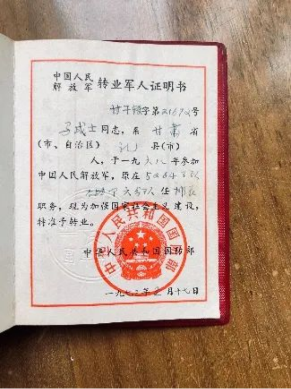 马成士,1949年生,甘肃天水人,1968年入伍,1973年5月转业至天水市汽车运输公司,2010年退休。