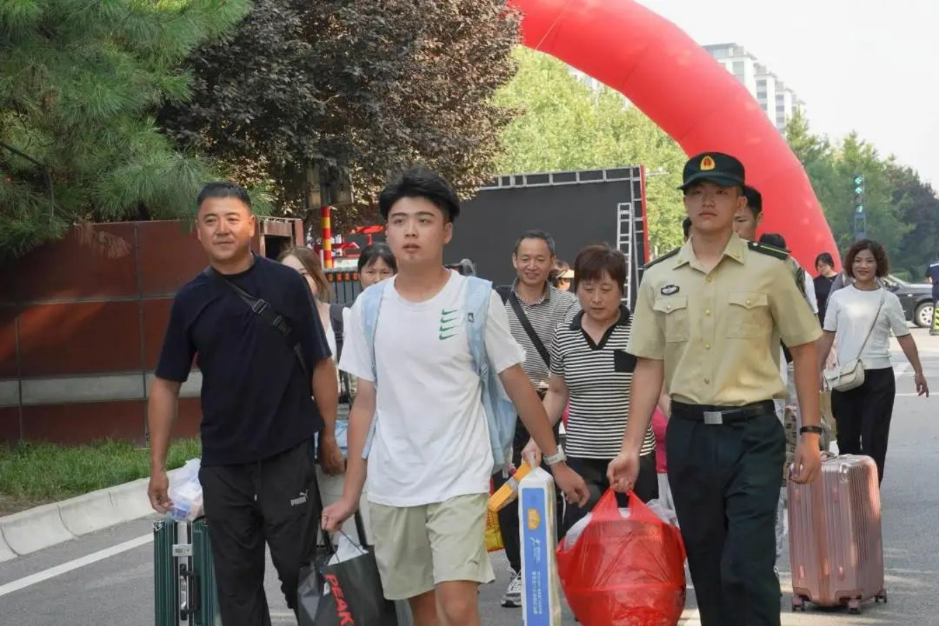 9月4日,负责迎接的学员志愿者们步伐铿锵,军姿挺拔,等待着新学员的到来。