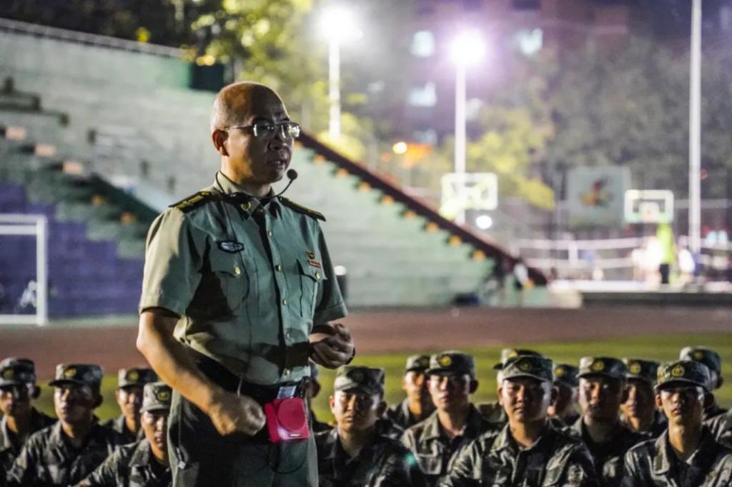9月7日,js33333金沙线路检测组织2023级军士学员在操场开展集中教育活动