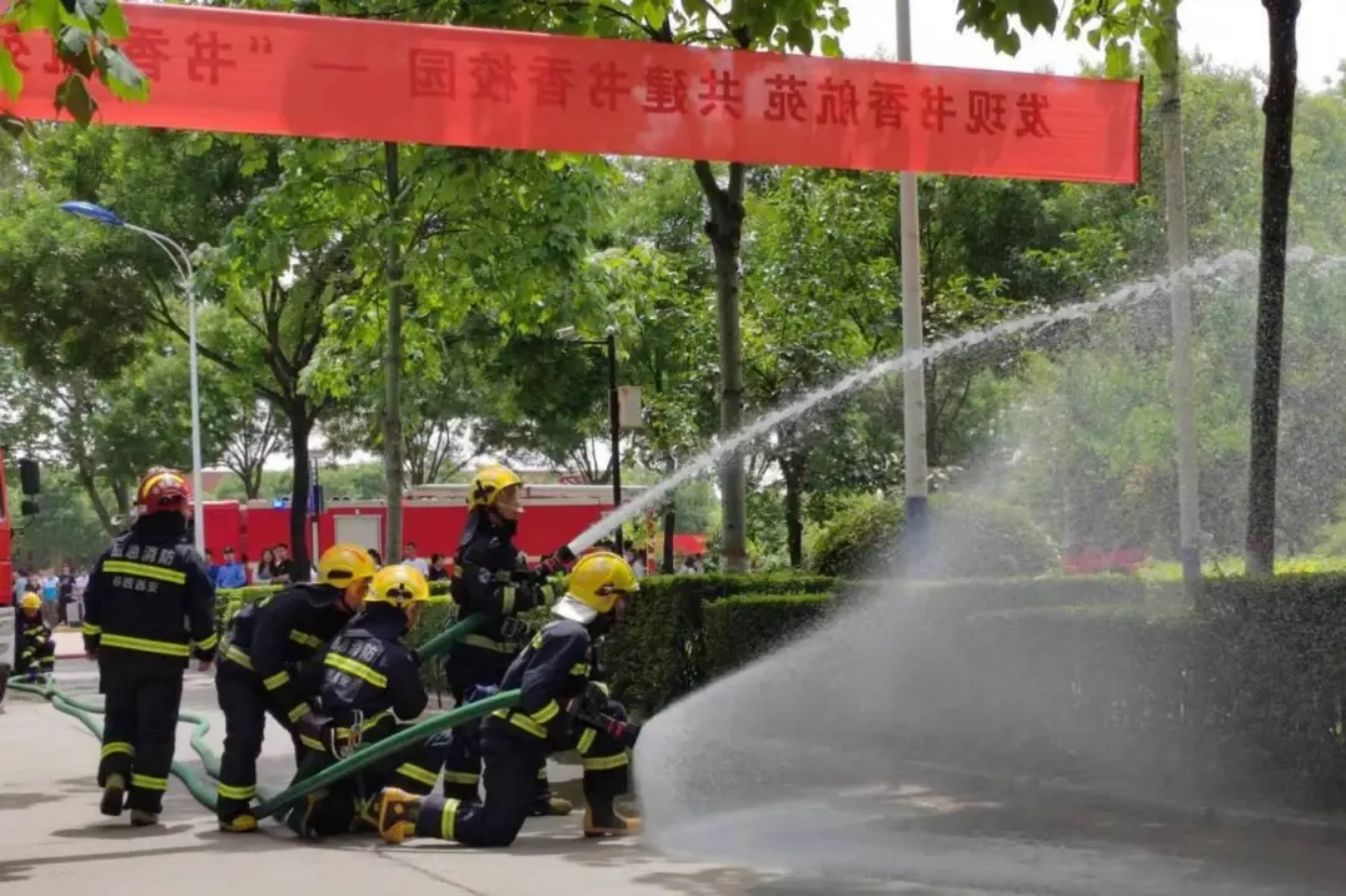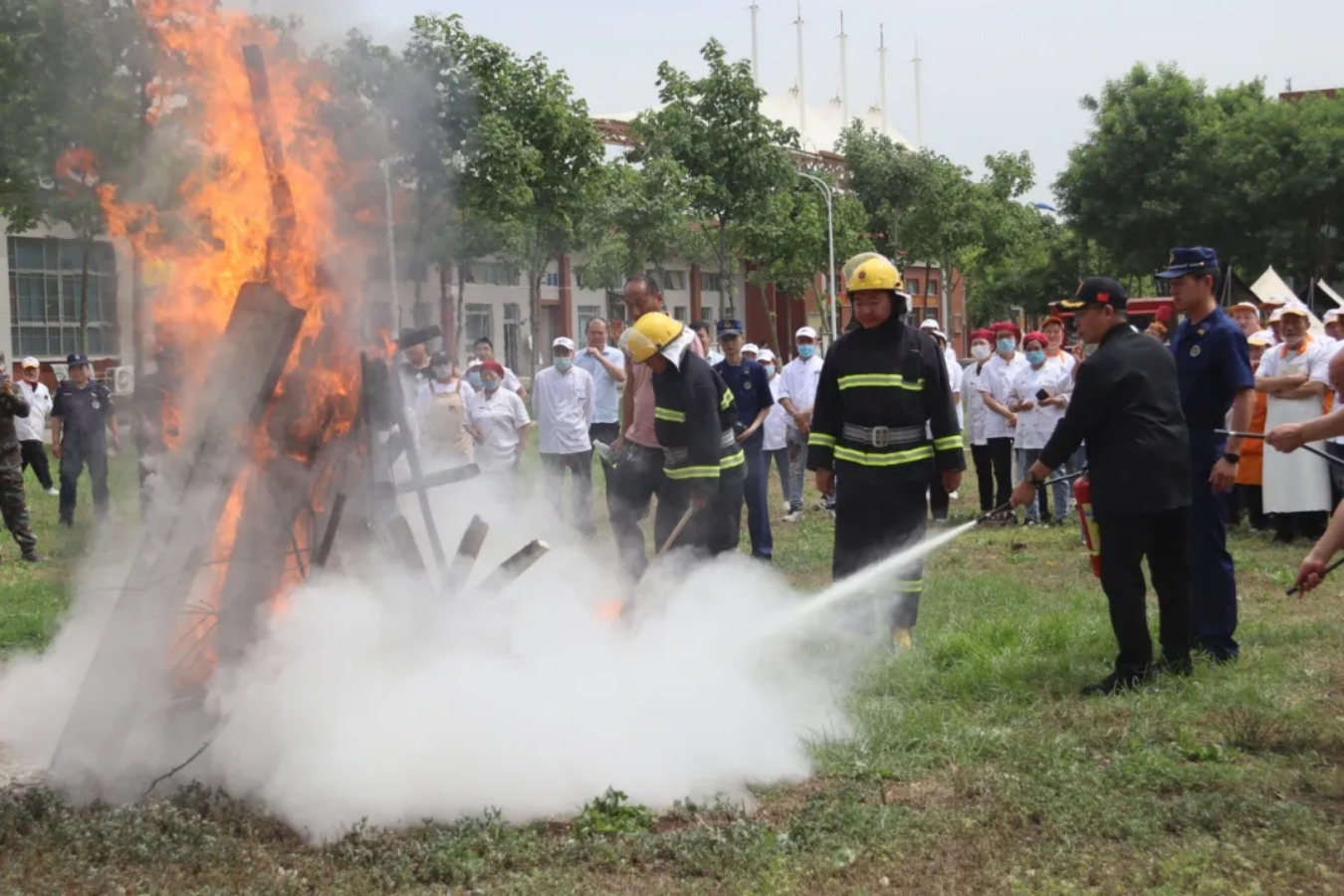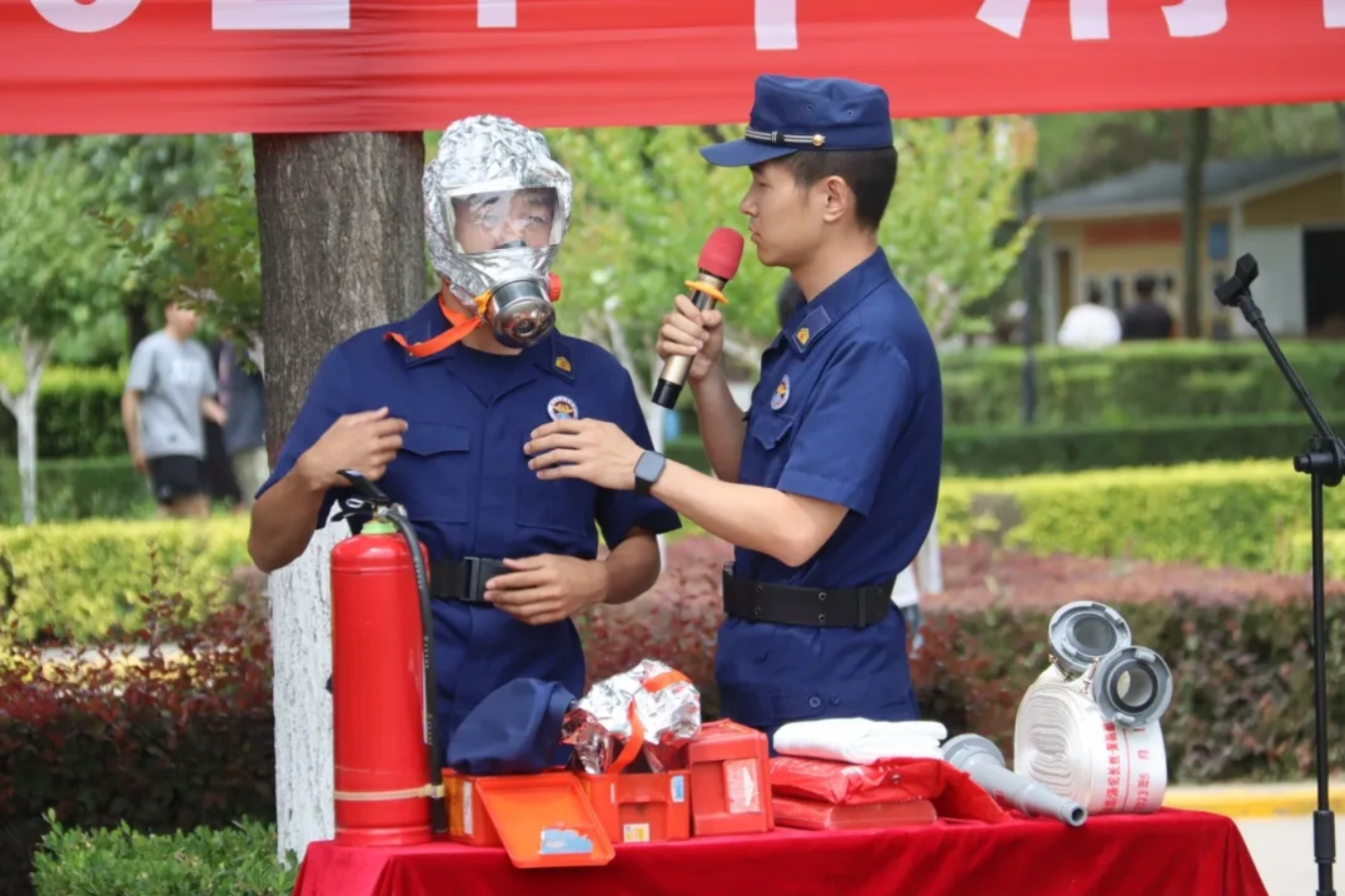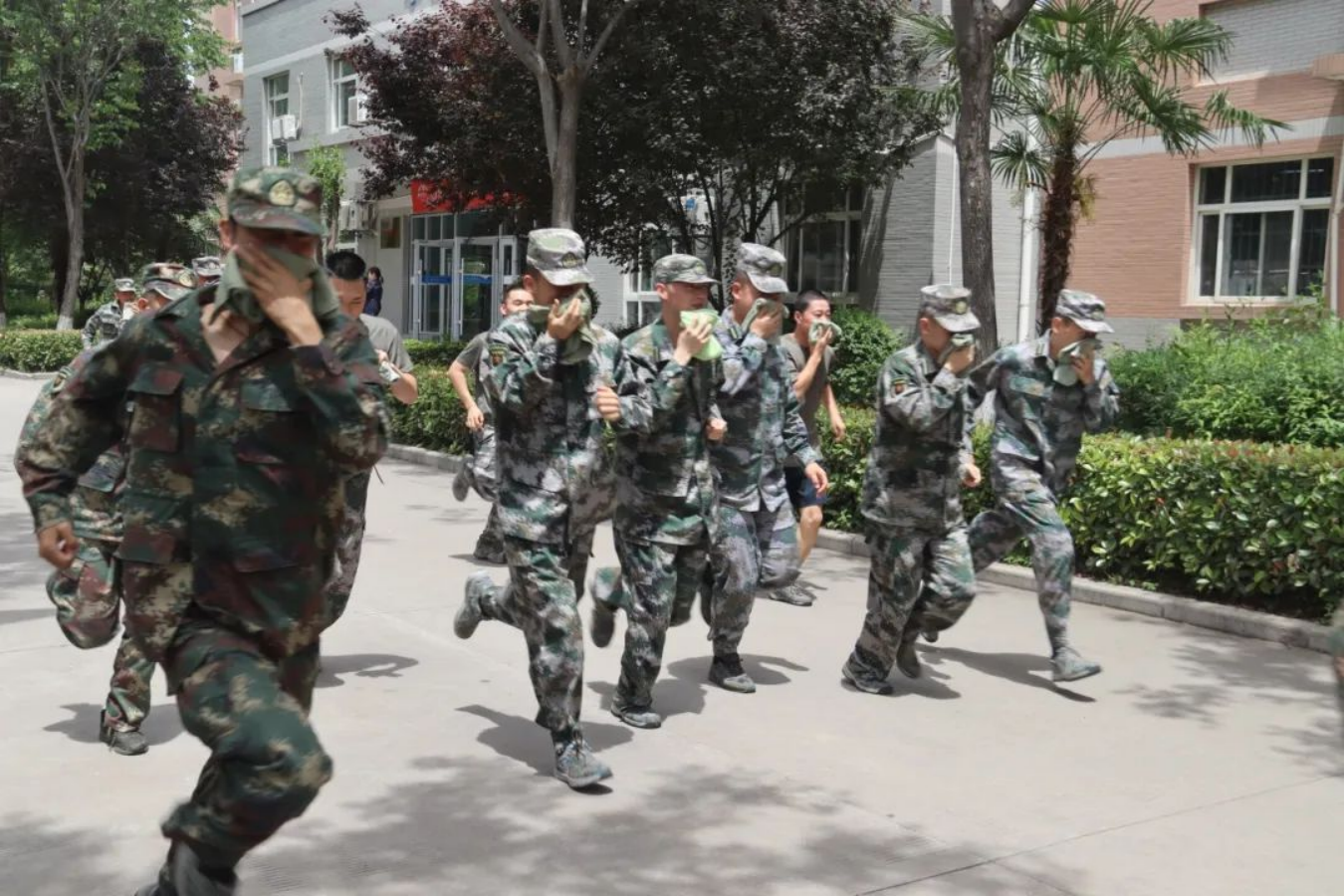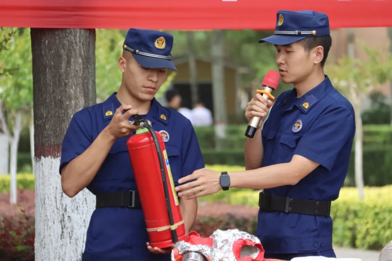 下午一点,随着警报声响起,学员们用湿毛巾捂住口鼻,按照宿舍楼消防应急疏散预案路线,迅速有序地撤离到安全地带。到达指定位置后,各班指挥员立刻清点并汇报人数,确保所有人员安全脱离危险区域。接着,消防员向在场师生介绍了灭火器的正确操作步骤和使用方法,科普了一系列其他逃生和灭火装置的知识,展示了一般性火灾的施救措施,随后由在场师生及志愿者陆续操作灭火器进行现场模拟灭火演练。