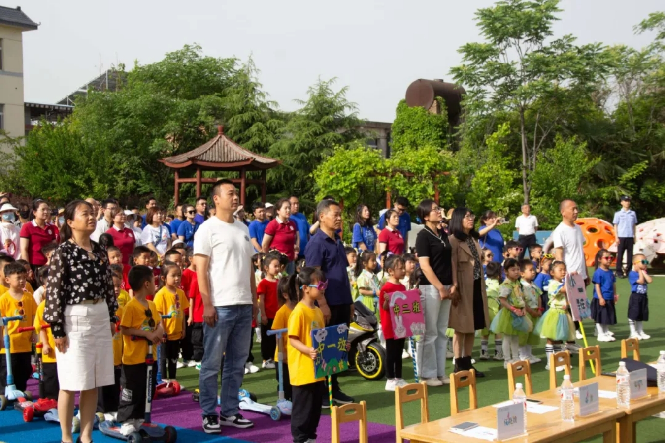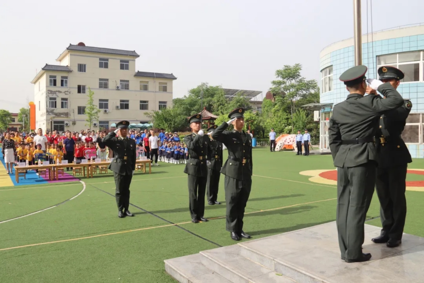 为深化爱国主义主题宣传与教育,落实爱国主义教育实践,5月11日,js33333金沙线路检测军政教官敬超凡带队组织国旗护卫队开展振兴幼儿园亲子运动会升旗仪式。
