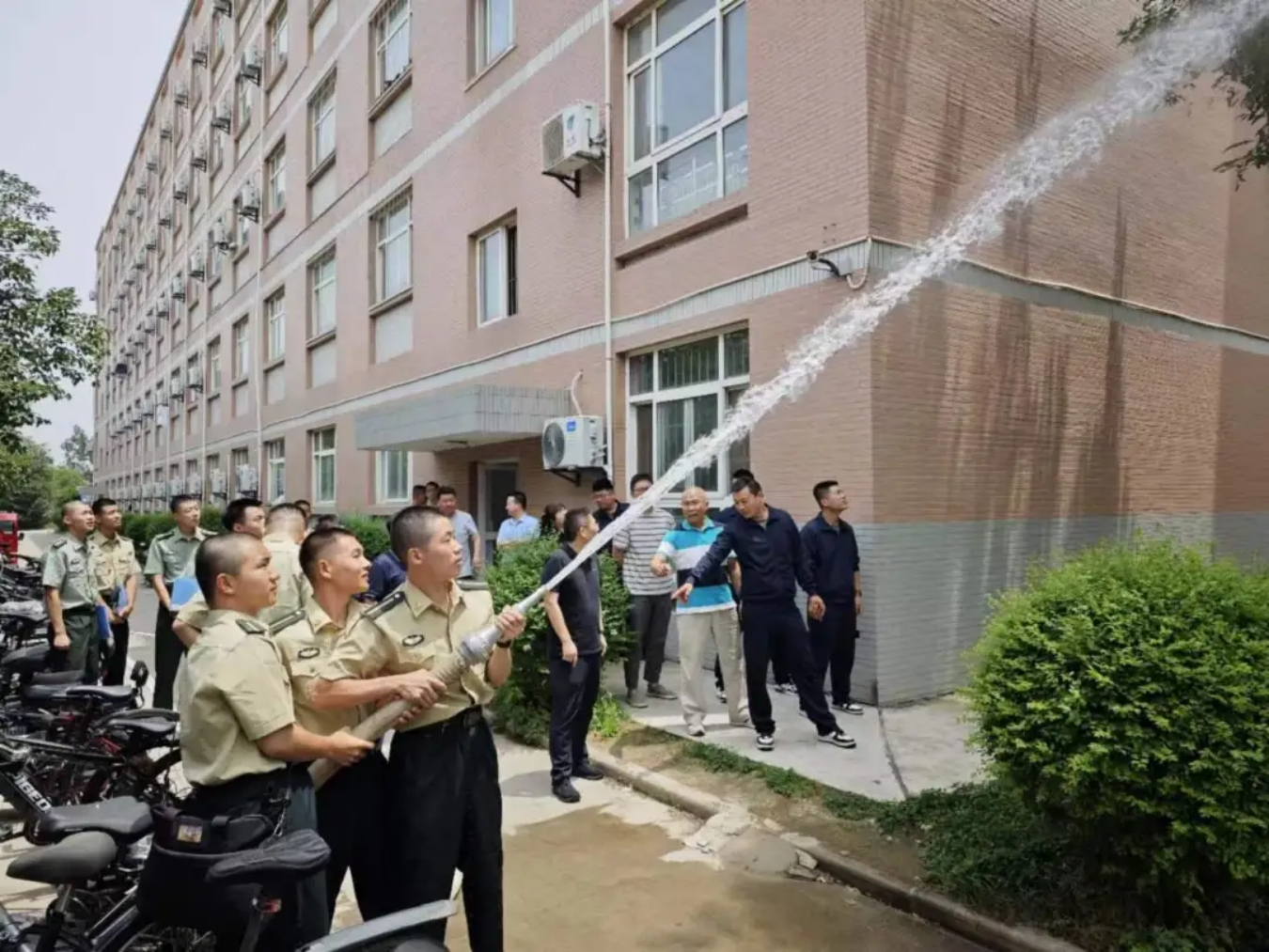 疏散完毕后,公司保卫处工作人员就员工公寓消防栓的使用方法及操作要领对公司全体教职工和部分员工安全员进行了培训。