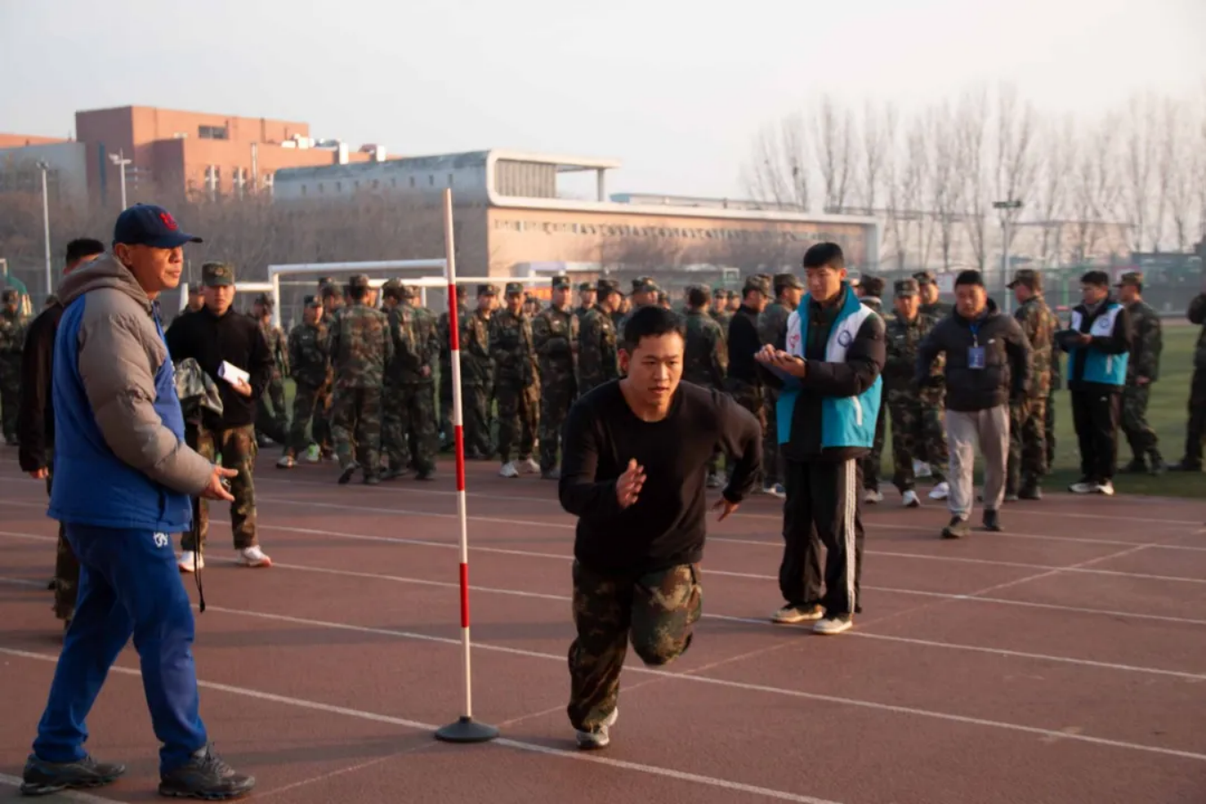 本次考核严格按照部队新训军事体育考核标准,分别对单杠引体向上、仰卧起坐、30米×2折返跑、3000米跑4个科目进行考核评价。为了确保考核的公正性和专业性,公司特别邀请校体育部选派教师担任主考,全程监督考试过程,确保考核科目有序进行。