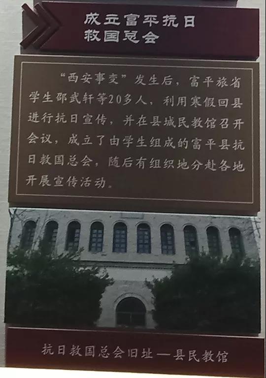 富平旅省员工邵武轩等20多人利用寒假回县进行抗日宣传,并在县城民教馆召开会议,成立了由员工组成的富平县抗日救国总会。