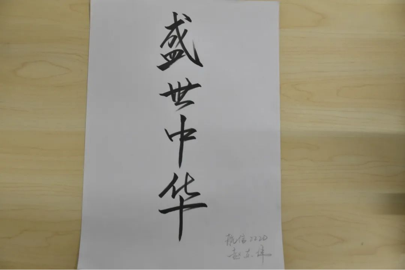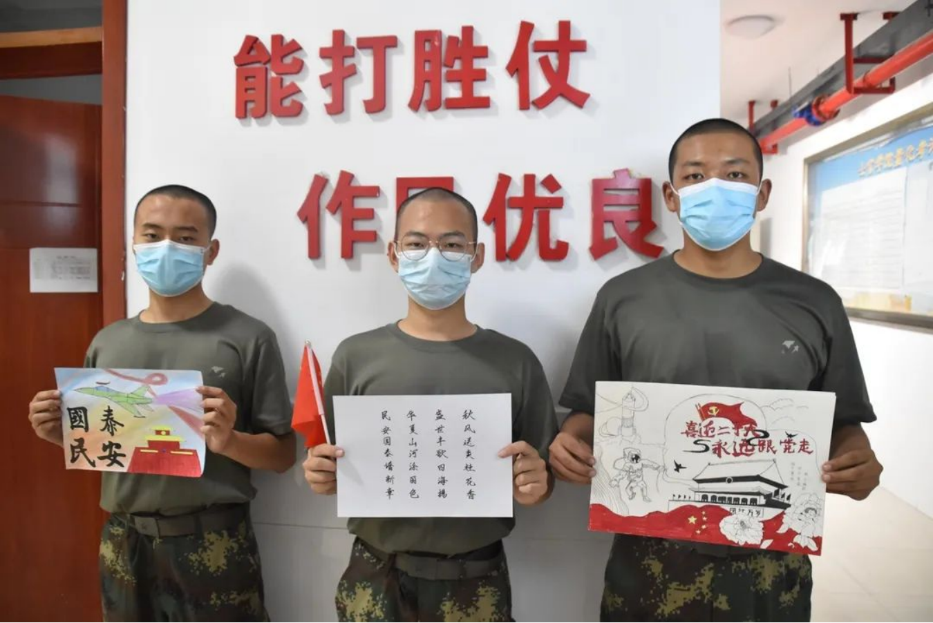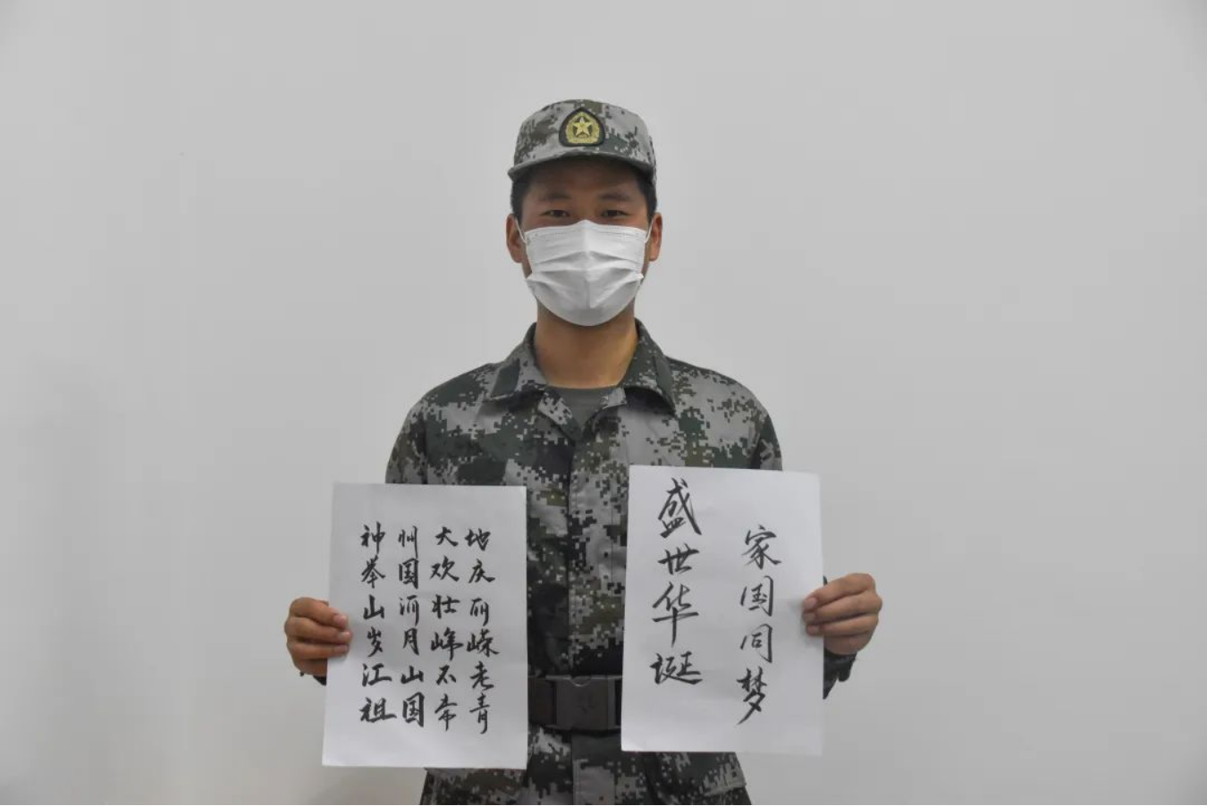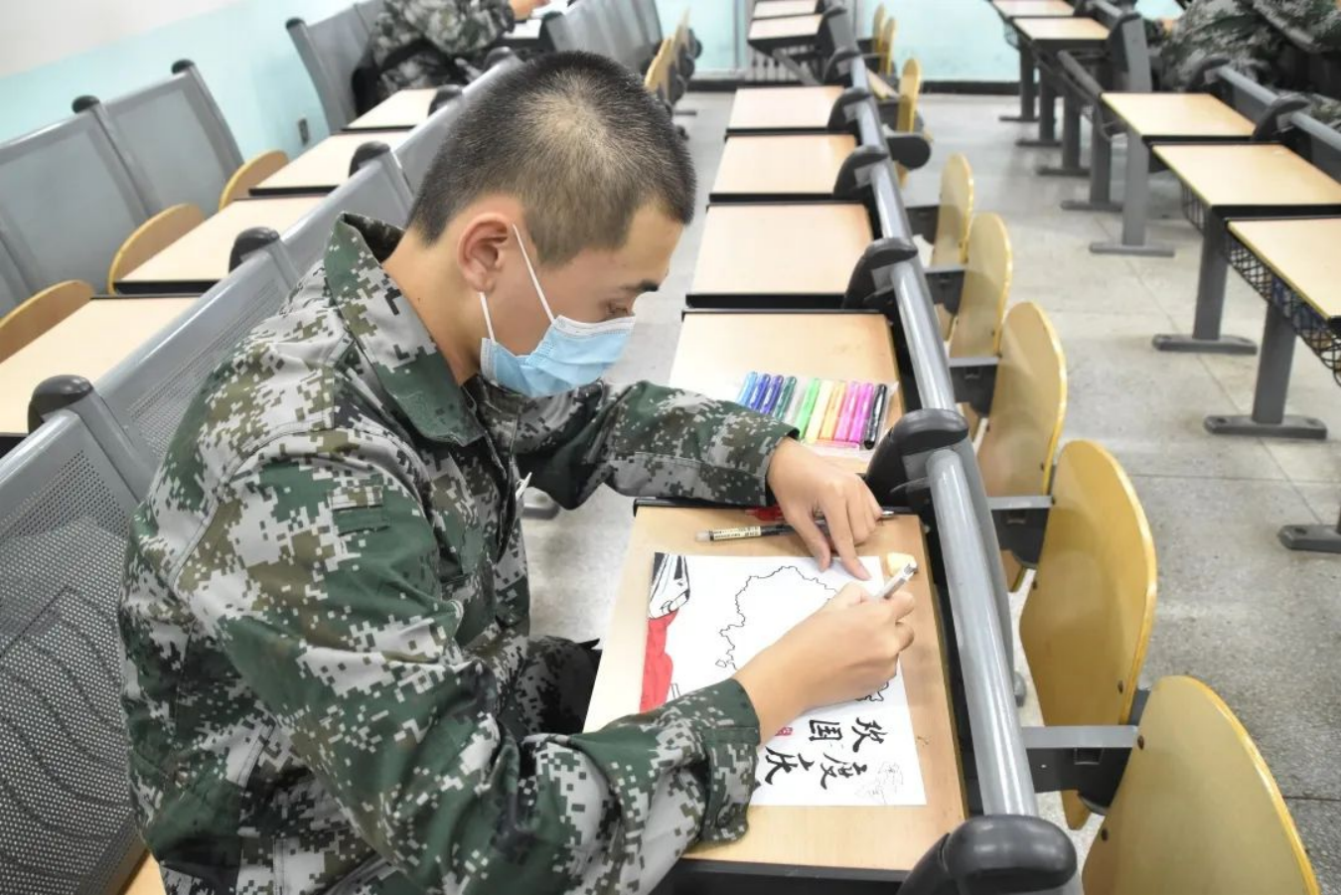 为庆祝祖国七十三周年华诞,士官学员们表达出深深的爱国热忱,在一撇一捺的笔画里抒发赞美,在五彩斑斓的水墨里彰显青春。