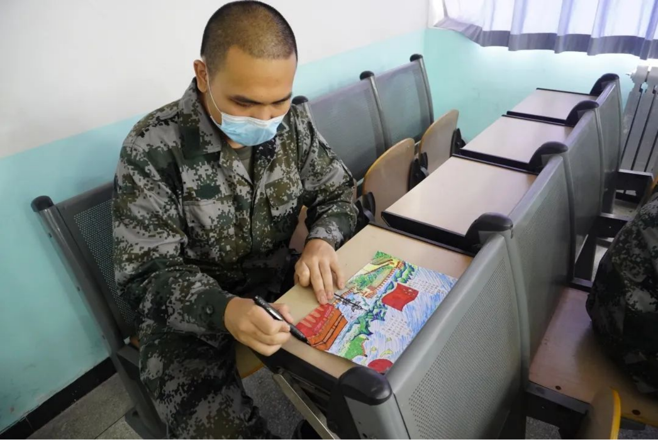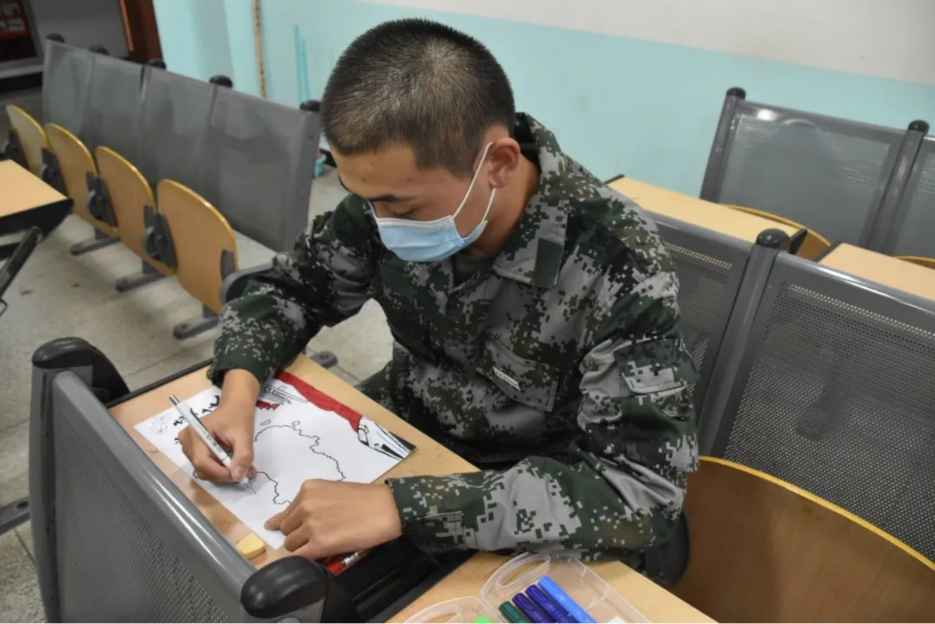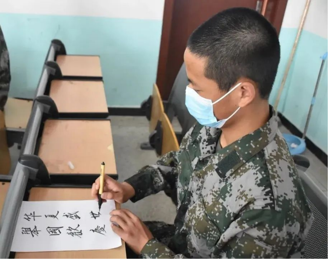为庆祝祖国七十三周年华诞,士官学员们表达出深深的爱国热忱,在一撇一捺的笔画里抒发赞美,在五彩斑斓的水墨里彰显青春。