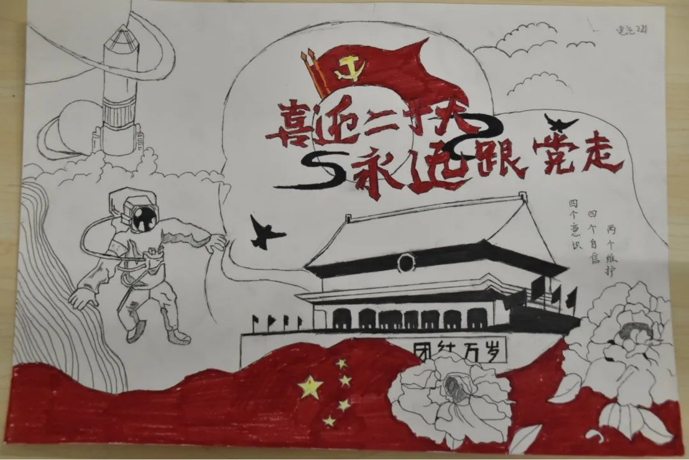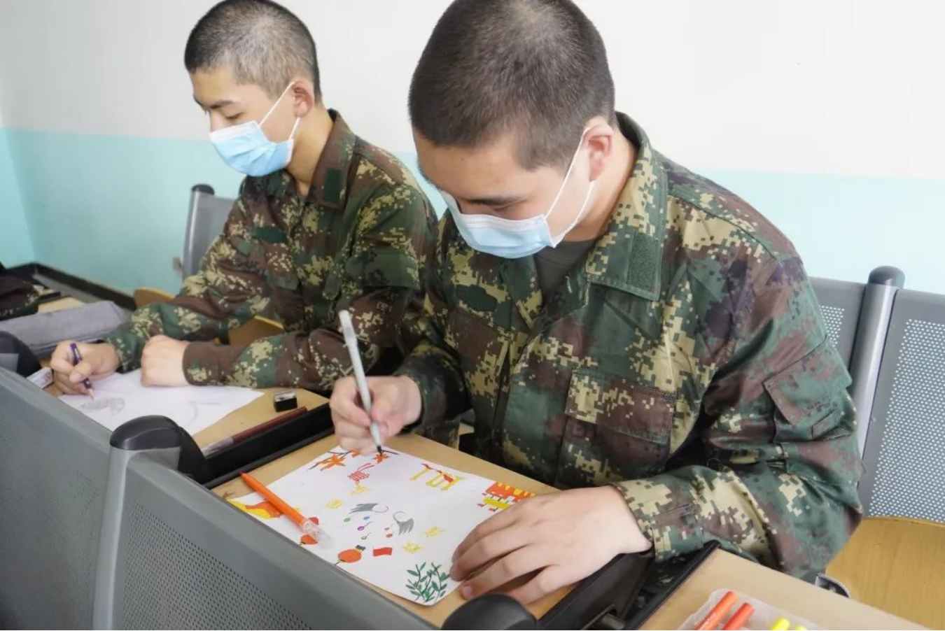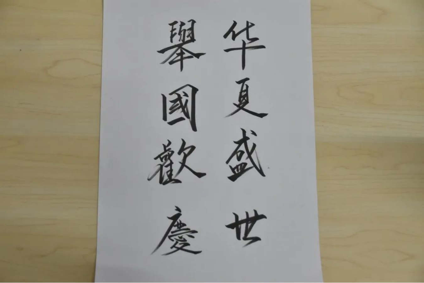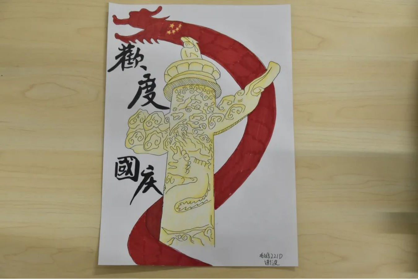 为庆祝祖国七十三周年华诞,士官学员们表达出深深的爱国热忱,在一撇一捺的笔画里抒发赞美,在五彩斑斓的水墨里彰显青春。