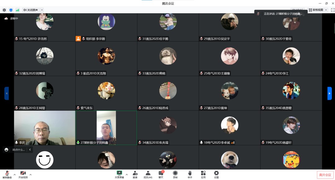 最后,党总支副书记李庆进行总结讲话,作出寄语。希望大家在今后的学习生活、乃至日后入伍中能够不忘入党初心,坚定理想信念,加强党性修养,提高自身学习能力;发挥模范带头作用,不断输出正能量,肩负起新时代新使命!