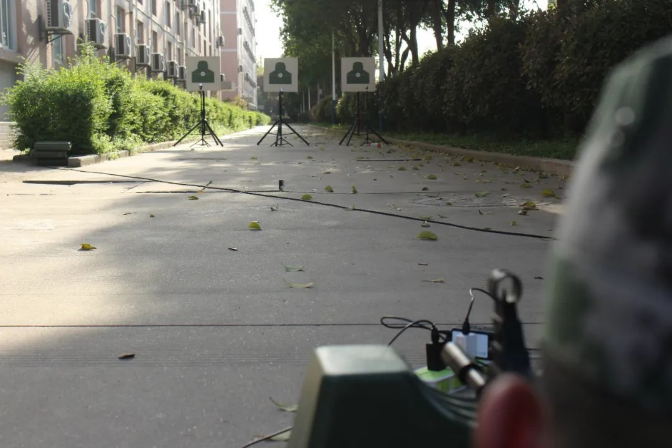 教学结束后,军训学员以班级为单位,有序地进行打靶训练项目。