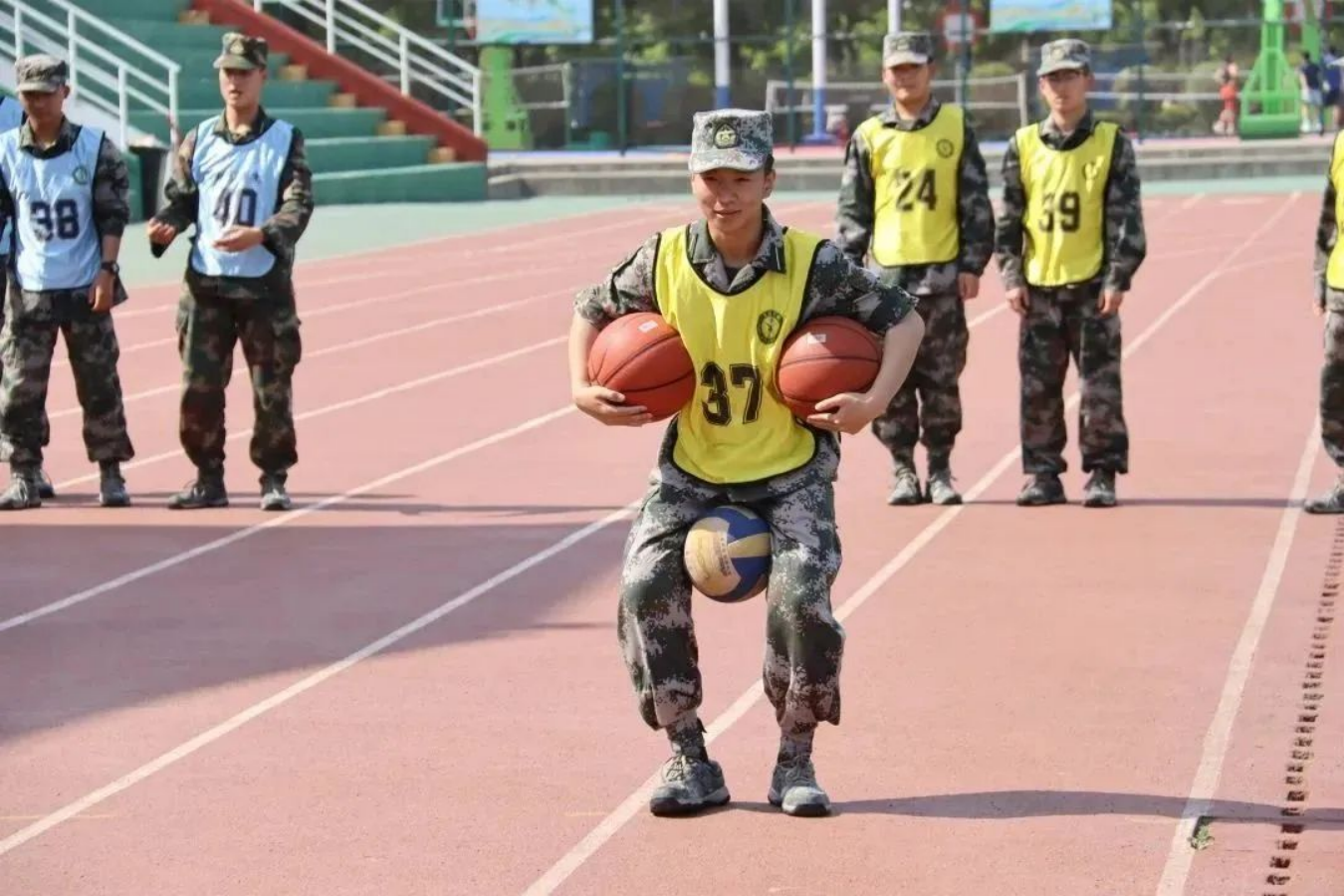 梅花不畏严寒,傲霜斗雪;学员不惧挑战,奋楫笃行。企鹅漫步项目中学员们手脚并用夹紧篮球和排球,像企鹅一样在赛道上蹒跚前行,以不屈之志全力奔赴终点。